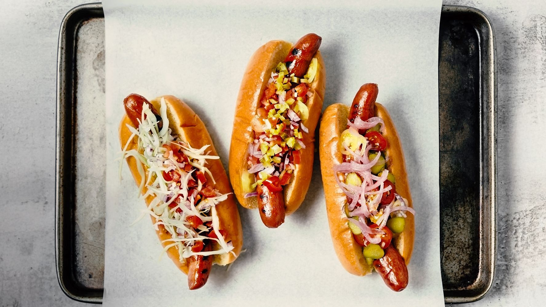 Der Begriff «Fast Food» wird vielen kreativen Hot Dogs gar nicht mehr gerecht. Ursprünglich war es ein einfaches, weiches Brötchen, länglich und etwas kürzer als eine Brühwurst oder ein Frankfurter Würstchen, das hineingelegt wurde. Etwas Ketchup, Senf und vielleicht zwei Scheiben Essiggurke — fertig. Einer Legende nach soll die Wurst ins Brötchen gekommen sein, als einem Wursthändler in St. Louis (USA) die Papierhandschuhe ausgingen und er als Ersatz die Wurst ins Brötchen steckte, damit sich seine Kunden nicht die Finger verbrannten. Der Name «Hot Dog» ist vermutlich den Hunden der aus Deutschland ausgewanderten Metzger in den USA geschuldet: Dackel, die in ihrer Statur einer Wurst ähneln. Heute finden sich vielerlei verschiedene Versionen. In Dänemark ist die Wurst rot, Rød Pølse, in Chile heisst der Hot Dog «Completo», ist doppelt so gross und üppig belegt. (nh)