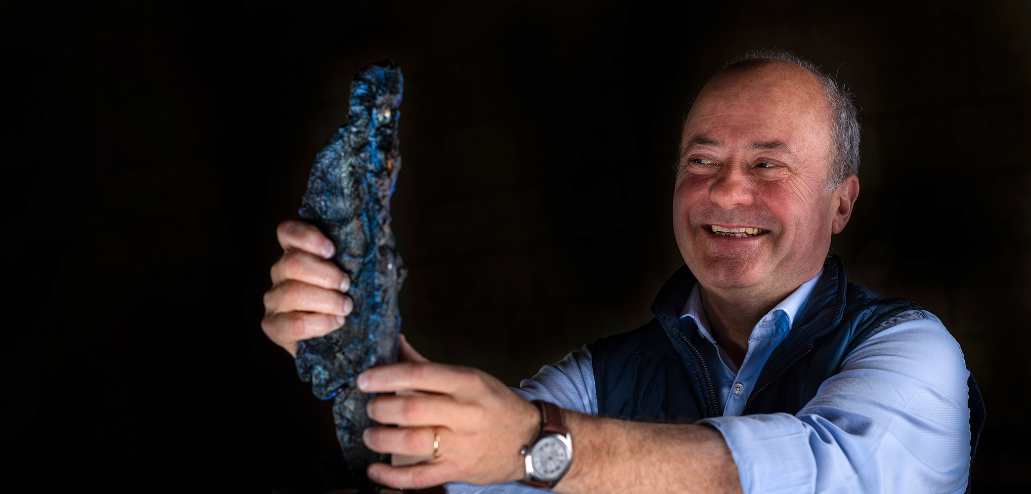 Dass er eine Skulptur des Elsässer Künstlers Michel Wohlfahrt in seinen Händen hält, ist kein Zufall. «Ich bin ein taktiler Mensch. Ich muss Dinge mit den Händen fühlen, die Erde, den Rebstock, eine Skulptur. Ich lebe auf dem Gut, umgeben von Weingärten. Meine Familie ist seit Jahrhunderten hier ansässig. Nach der französischen Revolution konnte einer meiner Vorfahren eine Parzelle des alten Adelssitzes Grand Corbin erwerben. Heute bin ich alleiniger Besitzer. Das verpflichtet.»