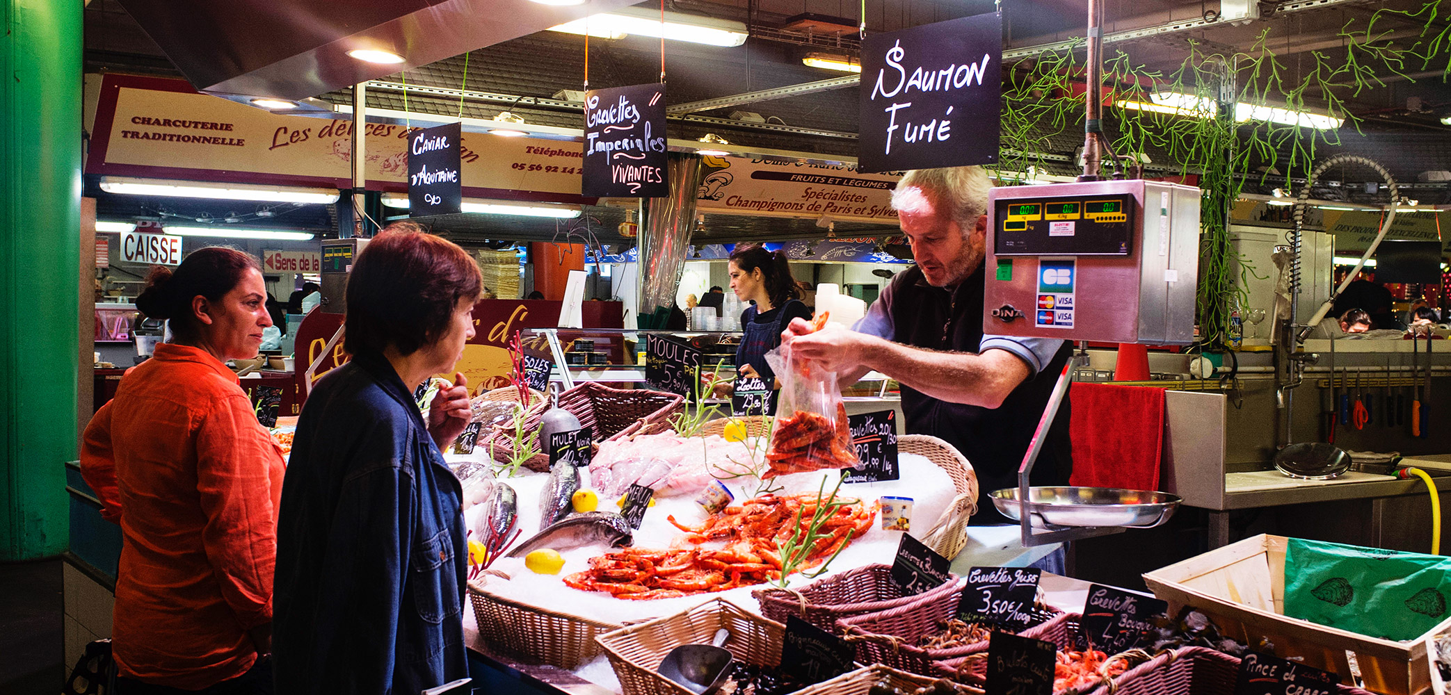 Bordeaux ist nicht nur eine grosse Weinregion. Bordeaux sitzt auch wie eine Spinne mitten in einem engmaschigen Netz von Produzenten erstklassiger landwirtschaftlicher Erzugnisse. Nicht nur in der Stadt selber gibt es legendäre Märkte, auch zum Beispiel in Libourne, Langon oder Blaye. Der Süden des Départements, die «Haute Lande Girondine», steht für erstklassiges Geflügel: zarte Tauben, schmackhafte Perlhühner, fette Enten und mehr. Auf den Wiesen werden nach strengen Regeln Rinder gemästet, die als «Boeuf de Bazas» Karriere machen, oder schon früh als saftiges «Veau sous la mère», mit Muttermilch grossgezogenes Kalb, in den Bräter kommen. Die Becken rund um Arcachon und Cap Ferret liefern vorzügliche Austern, die Gironde Crevetten und Aale und der Atlantik Seezungen und Rotbarben sowie eine ganze Anzahl weiterer Fische und Meeresfrüchte. Legendär sind auch Spargel aus Blaye, Artischocken aus Macau, Melonen aus Nérac, Tomaten aus Marmande, Erdbeeren und Backpflaumen aus Agen und anderes mehr. Die Liste ist noch lange nicht zu Ende!