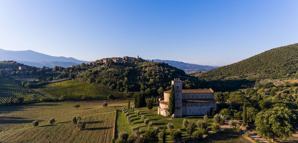 Sant'Antimo DOC, benannt nach der berühmten mittelalterlichen Abtei, die wenige Kilometer von Montalcino entfernt liegt und deren Geschichte mit Karl dem Grossen begann. Der Sant'Antimo, von dem etwa 300 000 Flaschen produziert werden, umfasst viele verschiedene Rot- und Weissweine mit je nach Typ unterschiedlichen Eigenschaften.