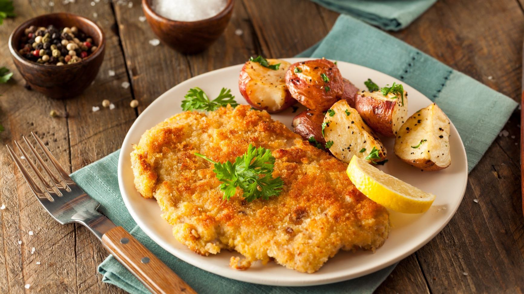 Goldgelb und schwimmend in Schweinefett oder Butterschmalz ausgebacken ist das Wiener Schnitzel – das nur so bezeichnet werden darf, wenn es aus Kalbfleisch besteht – ein Klassiker der österreichischen Küche.