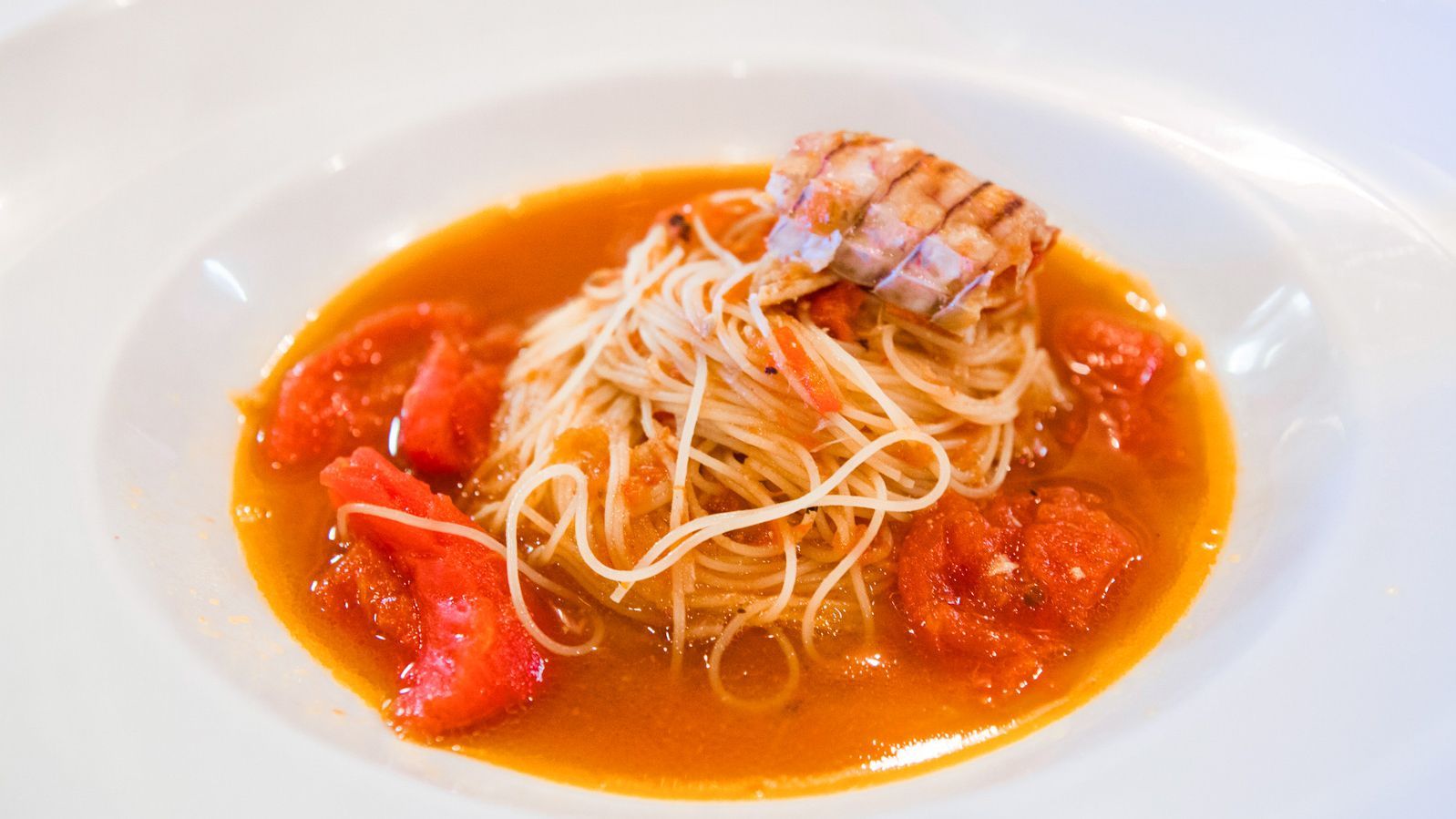 - Nach einigen Minuten Kochzeit die Temperatur reduzieren und die gehackten Tomaten und alle Fische nacheinander hinzugeben: beginnend mit den widerstandsfähigsten (Zikade, Knurrhahn, Tintenfisch) und endend mit den zartesten (Kabeljau, Seezunge).