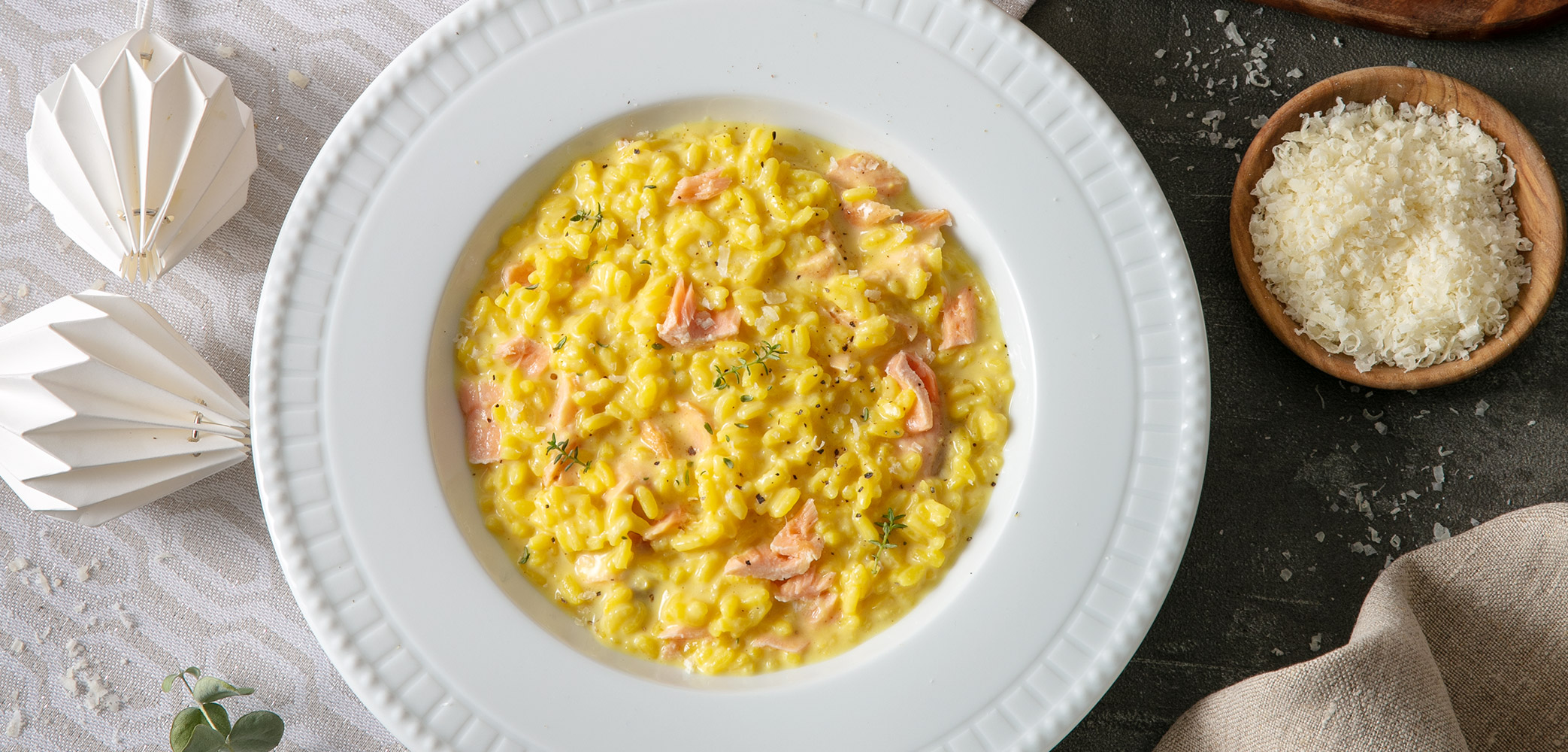 Lachs-Risotto mit Lauch, Zitronenthymian und Grana Padano g.U. Riserva
