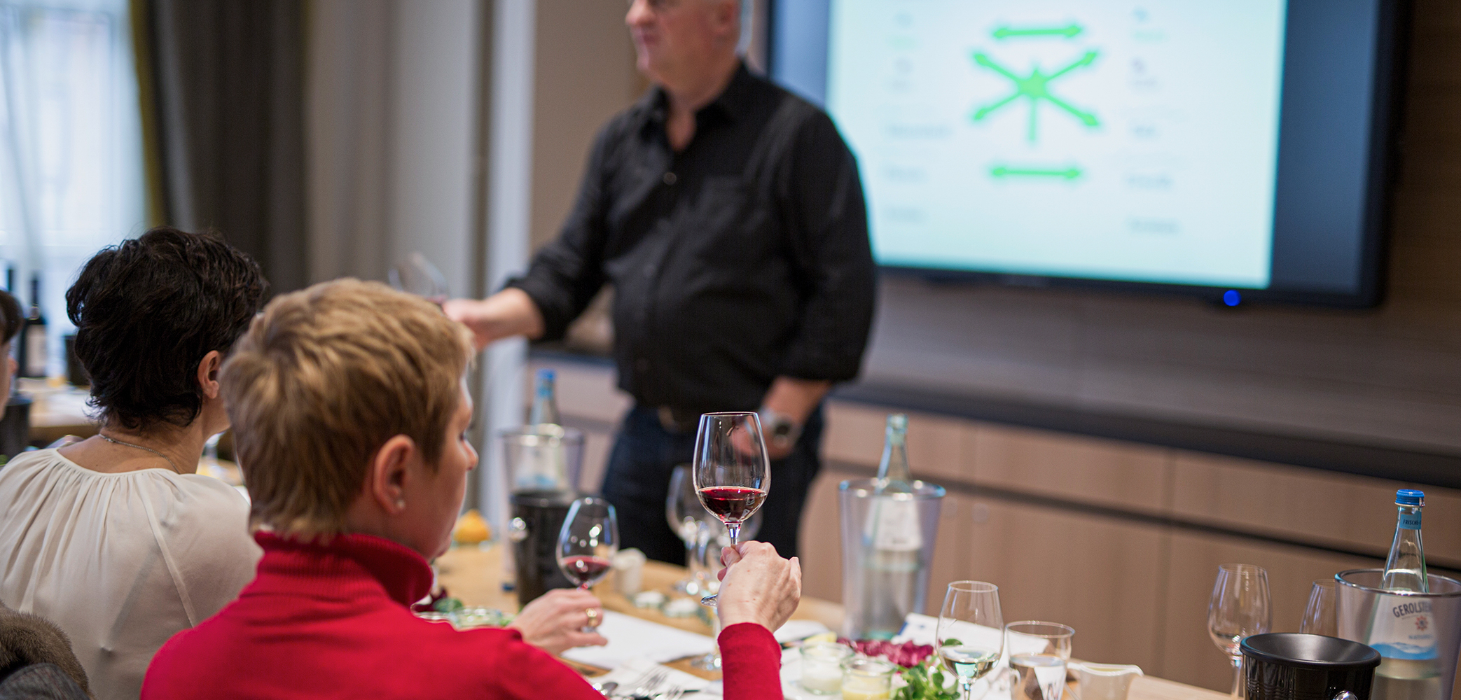 Wer in der Weinwelt hoch hinaus möchte, startet oft erstmal in Koblenz. Am Rande der Altstadt steht ein Hotel im Charme der 70er Jahre. Hier befindet sich die Deutsche Weinschule. Sie ist eine von einer Handvoll Adressen in Deutschland, die Menschen zu Sommeliers machen. Insgesamt 400 Stunden dauert es, bis man zur Sommelierprüfung zugelassen wird. Die Tage in den Konferenzräumen gleichen oft einem Geografiestudium. Orte, Täler und Lagen werden abgefragt, die sieben Grand-Cru-Appellationen im Chablis sollte man genauso parat haben wie die Rebsortenverteilung in der Franciacorta. «Um argumentieren zu können, müssen Sommeliers Faktenwissen haben. In der Prüfung zählt das genauso wie handlungsorientierte Aufgaben », sagt Johannes Steinmetz, der die Schule leitet. Dabei geht es nicht nur um auswendig gelerntes Wissen. Die Schüler trainieren auch den praktischen Umgang damit. Foodpairing-Regeln, das Gestalten einer Weinkarte oder der stilechte Service stehen ebenfalls auf dem Stundenplan. Zudem gibt es zahlreiche Inhalte, die erstmal nichts mit Wein zu tun haben, betriebswirtschaftliche Kurse wie Weinkalkulation und Warenbeschaffung etwa. Hier wird klar: Sommelier ist ein Beruf, kein Hobbyworkshop. Das zeigen auch die Zulassungsvoraussetzungen, zu denen unter anderem eine mehrjährige Berufserfahrung zählt. «Der Werdegang zum Sommelier ist eine Berufsqualifikation. Wir bilden Gastronomiefachleute aus», sagt Steinmetz.