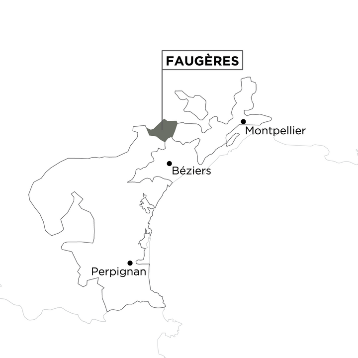Faugères ist eines der jüngsten Anbaugebiete des Languedoc. Die kargen Böden an den Ausläufern der Cevennen, über denen immer wieder heftige Gewitter niedergehen, dienten früher in erster Linie der Viehzucht. Im 19. Jahrhundert lieferte die Ecke vor allem Grundweine zur Destillation eines beachtlichen Fine de Faugères, dessen Produktion im Jahr 2000 wieder aufgenommen wurde. Erst nach dem Zweiten Weltkrieg wurde die aussergewöhnliche Qualität der Böden anerkannt. 1982 wurde Faugères zur AOC aufgewertet. Seit 2005 gilt diese auch für die weissen Weine.