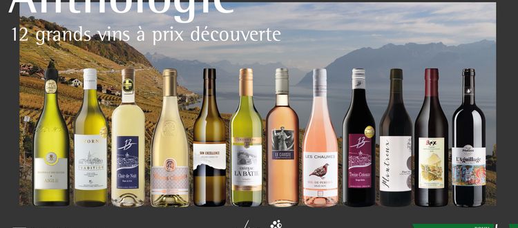 Anthologie est un carton de 12 vins vaudois élaborés par des caves coopératives, à commander à prix spécial.