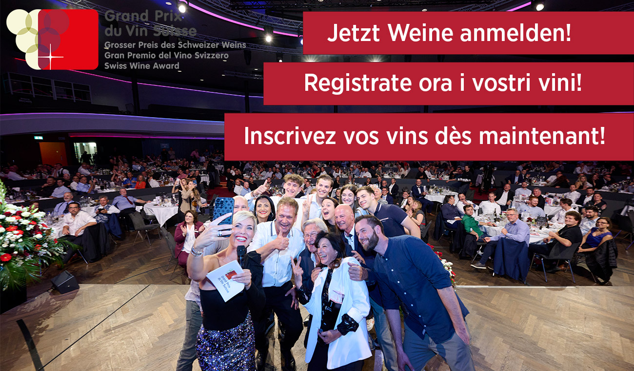 La 18e édition du "Grand Prix du Vin Suisse" est à nos portes et en 2024 aussi, le concours de vin suisse le plus couronné de succès cherchera les meilleurs vins et vignerons du pays. Inscrivez vos vins dès aujourd'hui et saisissez la chance de faire connaître encore mieux vos vins à la communauté nationale et internationale des fans de grands vins suisses ! Cliquez ici pour accéder à la page d'inscription.