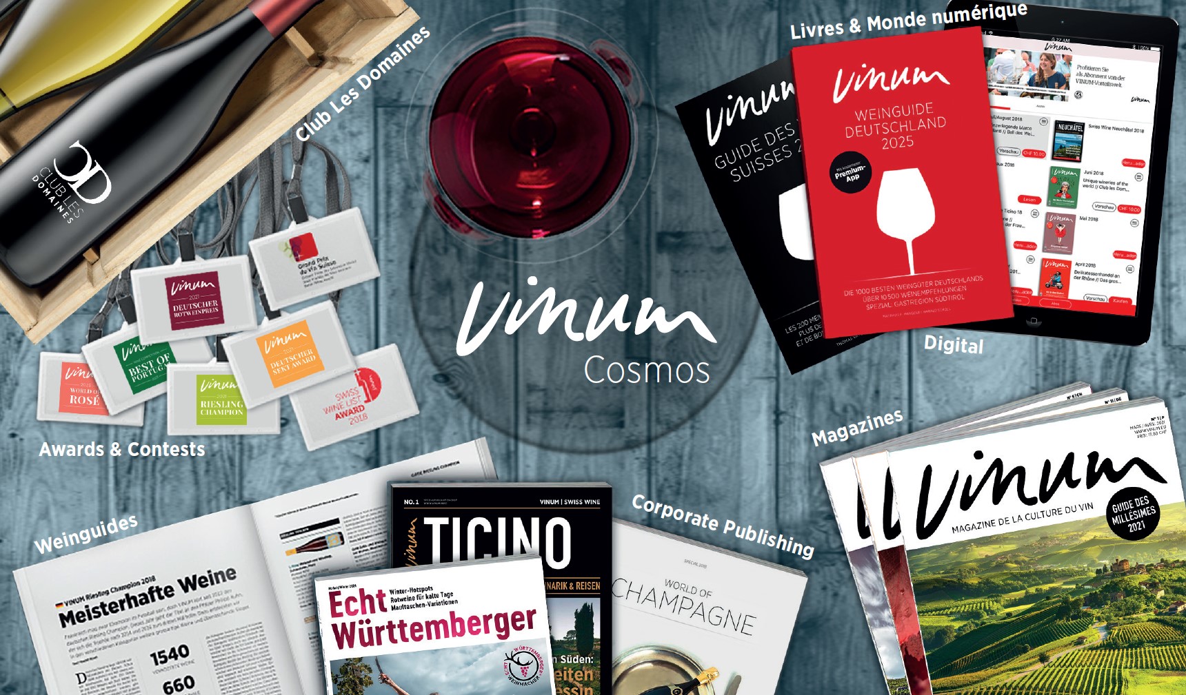 VINUM est le plus grand magazine européen du vin. Implantés dans toutes les régions vitivinicoles importantes d’Europe (France, Italie, Allemagne, Suisse, Espagne, Autriche), les auteurs de VINUM assurent une information de grande qualité et des reportages authentiques, directement inspirés du terroir.